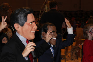 The boys were clearly hamming it up and did their best to field some tricky questions parents had about the economy and foreign policy. To their delight they took home the prize for “Funniest Costume,” and they managed to divide up the prize without any arguments in a wonderful display of bipartisanship.