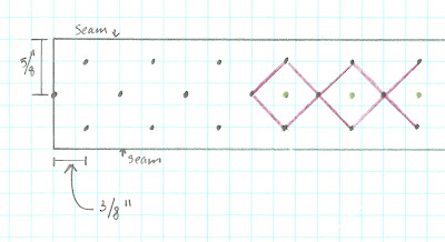 - Referring to the diagram below, make a mark ⅜” in from the left edge of your strip and ¼” down from the upper edge of your strip.