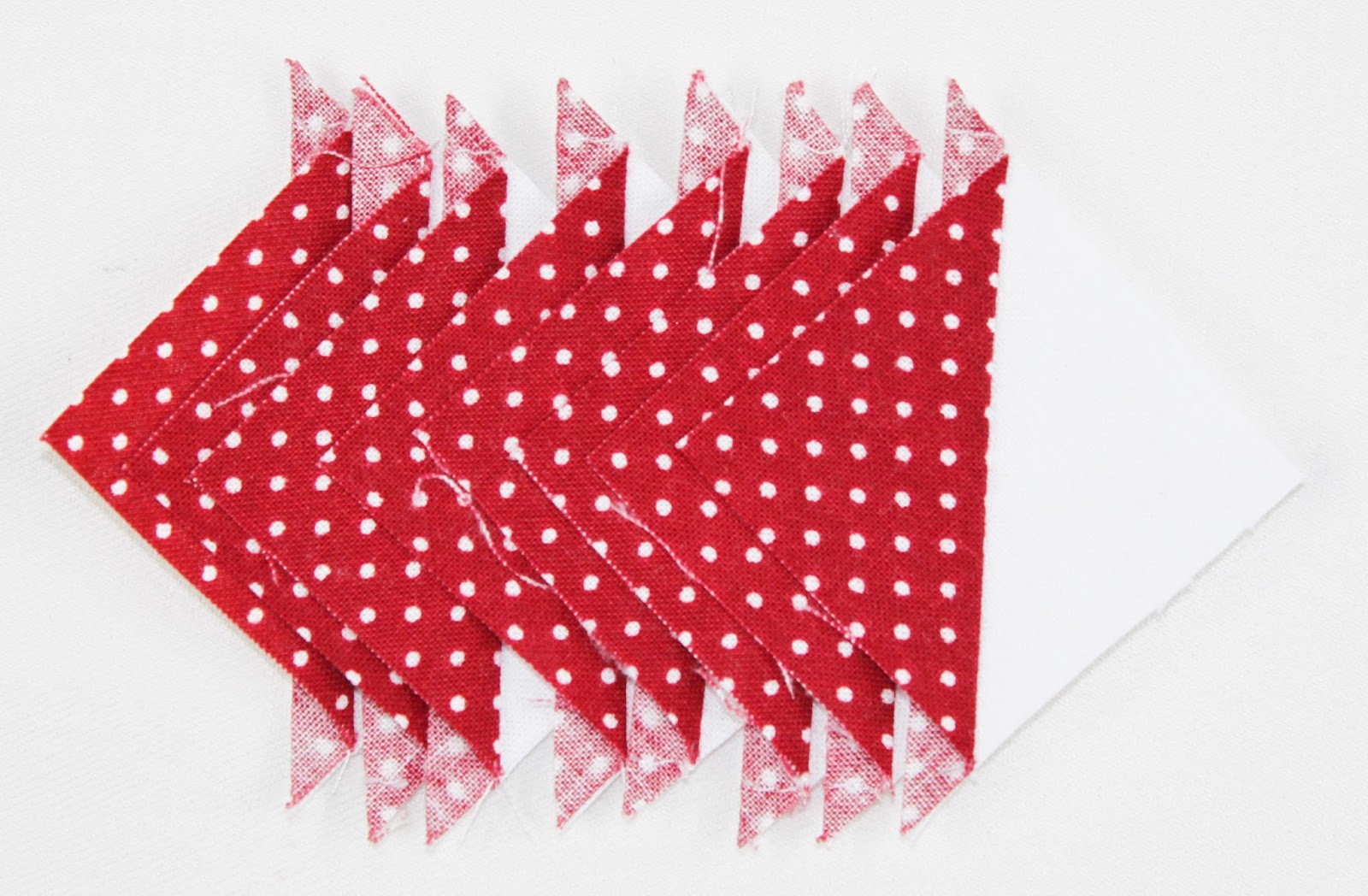 You may have surmised from the above picture that we’re making half-square-triangle units again! These will be smaller HST units and we’ll be making quite a few of them. We won’t be making the star pictured above for this project, but I’m definitely filing the idea away for another time—I love the red and green polka dots together!